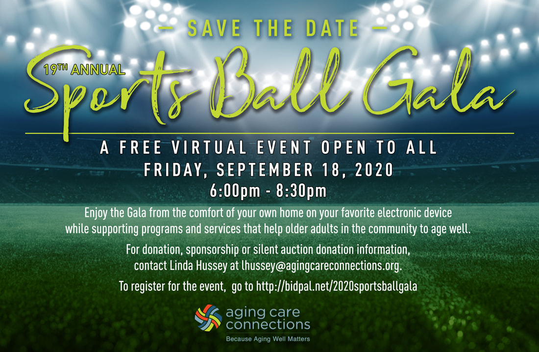 Enjoy the Sports Ball Gala from the comfort of your own home on your favorite electronic device, while supporting programs and services that help older adults in the community to age well. Register in advance to get updates about our Gala, including silent auction items and special guests.